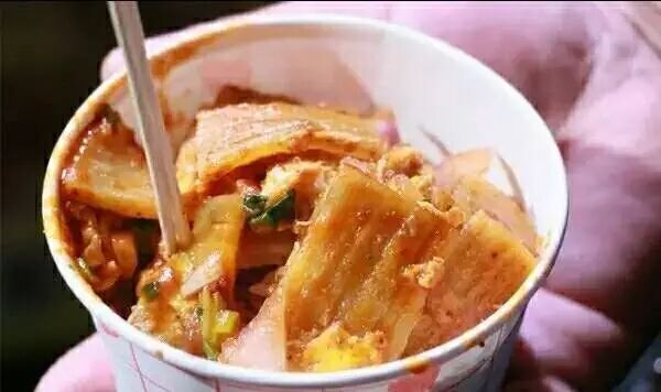 烤冷面这种小吃就犹如一夜春笋般冒出的重庆小面和鸡公煲一样,让人着实有点没兴趣。可这家烤冷面已有四年的历史,如面皮一样的冷面先在铁板上煎制微黄,加上鸡蛋翻面,刷入韩式辣酱与秘制酱汁,出锅前与一起煎制的洋葱混合,撒上葱花切块。你要是想知道他们家跟别家不一样的点在哪,那必须是这秘制的酱料!
