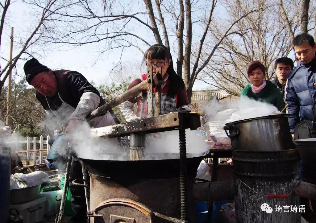 我曾和朋友一起去蓝田,见识了饸饹的制作流程,才知道为何饸饹细长不断,原来饸饹的制作也是有专门工具。制作饸饹的工具叫“饸饹床”,是一个筒形木制的容器,底端有网漏,上有连接长木柄的杵头,做饸饹时将“饸饹床”架在锅台上,荞面揉团,放进容器,锅中水烧沸,通过木柄使杵头压荞面团,面团通过网漏挤出就成了细长条。锅里添两遍凉水,将其煮熟后,饸饹就真正出锅。我看过制作过程,才明白古人为何将饸饹起名河漏,上有网漏,下有沸水,河漏之意就很明显了。![]()