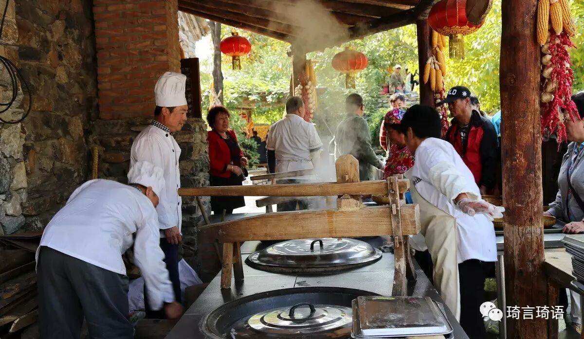 蓝田风俗,婚丧嫁娶、老人过寿、小儿满月酒,招待来宾下午吃正餐,中午吃的就是饸饹。有的人家将灶摆到门外,从清早到下午烧火不熄,一人揉面,一人下饸饹,一人调味浇臊子,一人端给来宾,大家忙而不乱。饸饹谐音和乐,柔软绵长,象征长命百岁,人们吃饸饹正是对生活寄托了美好的希望。![]()