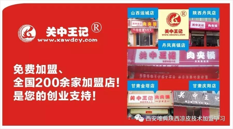 “关中王记”品牌是西安唯典餐饮管理有限公司旗下的第二个陕西小吃品牌,现阶段对来西安唯典参加餐饮技术培训的广大学员免费加盟!您可以开一家陕西小吃店,陕西风味面馆、羊肉泡馍馆,我们提供全套技术及加盟支持!