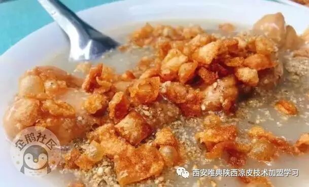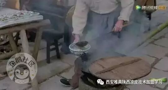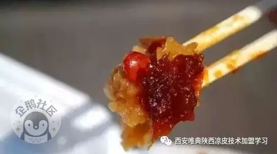 然后放上盐、醋、特制的调料水、豆芽等,最后用筷子挑起一撮皮子在辣椒油里美美一蘸,红红的,油油的,一起淋到皮子上端到食客面前,不等入口那扑鼻的香味就已经谗的人口水直流了。这其实就是最正宗的秦镇米皮的调法。