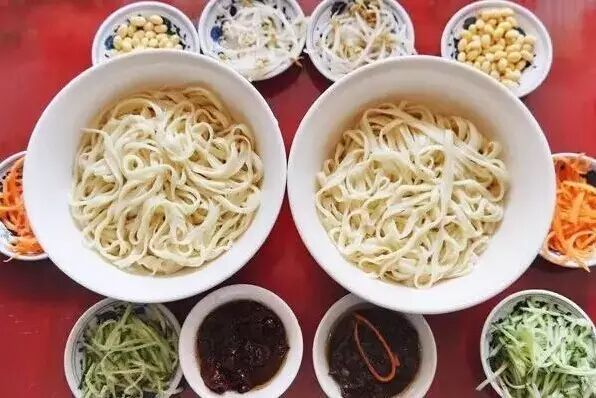 炸酱面精髓都在炸酱上。首先选用的黄酱一定要好,做黄酱时里面加的是白面而不是棒子面,否则酱凉后容易坨在一起,不好拌开。可不要小瞧这炸酱面,它里里外外透着的都是北京菜粗犷而不失细致的精髓。