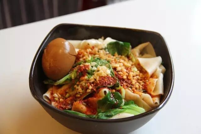油泼面是陕西有名却又普遍的面条,光看名字就知道属于重口味的类别。辣椒和油的比例掌握的很好,面条的黏性也适中,不会出现面条黏在一起的现象。最爱的是略带酸味的口感,和整片面条入口的饱满。