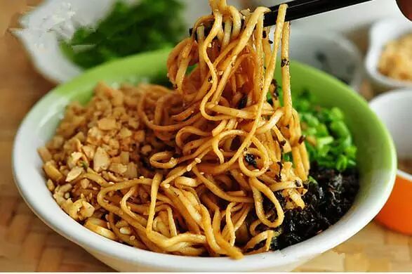 勾魂燃面,据说用火能将其点燃。虽说没有人用火真的去将面点燃,但是这种裹着花生末、芽菜、辣椒碎的油亮亮的面条,将食客的胃口轻易点燃却是实实在在的。