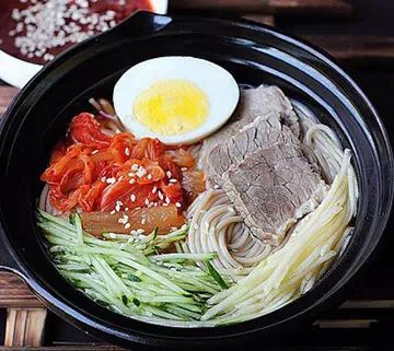 9)冷面须煮2~3分钟之后,用冷水清洗多次,然后放在冰块上冷镇