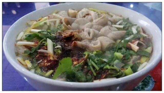 杨凌蘸水面杨凌蘸水面面和汤是分开吃的,吃的时候从大盆里面挑出宽且劲道的面拉到汤中,夹着面一口一口吃。面白薄筋光,油汪蒜辣香,汤面分盆装,越嚼口越香。