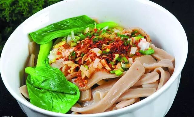 陕西biangbiang面陕西biang biang 面食陕西关中传统特色风味面食,是传统的陕西裤带面,因制作的过程中 biang biang 的声音而出名。将上等的精面粉手工拉成长宽筋道的面条,加上小葱、酱油、辣椒面等用热油泼制而成。