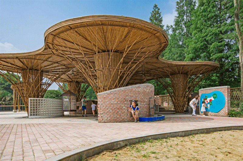 整个农场还多有设计感的,好多地方都是竹子搭建的,环境一点儿都不“农”~