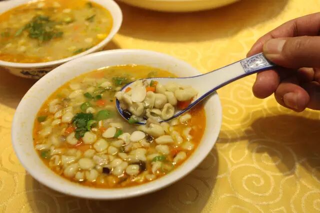 关中平原土地肥沃,尤其适合种植小麦,所以面食自古以来就是当地人饮食的根本所在。面粉到了陕西人手里会变化出无数种可能,锅盔、面条、花馍等,一天吃一种也能一个月不重样。臊子面、“biangbiang”面、摆汤面、蘸水面、刀削面、干拌面……单是臊子面又有岐山臊子面、关中臊子面等地域上的差别。Photo by Michael T. via Flickr每个陕西人对面条都有着自己的坚持,薄厚、宽窄、嚼劲儿都成了会影响食欲的关键。在他们眼中,机器压制的面条只能是时间仓促时候的无奈选择,想吃到好的面条,一定得先花功夫。以前当地有句话叫:“好媳妇,一碗面。”只要有一个会做面的媳妇,就能让男人们看到幸福生活的希望。面食的花样不止于面条,煎饼、鱼鱼儿、麻食等,种类繁多,超乎想象。有句老话叫“不时不食”,就是说饮食一定要顺应季节,这一点也充分体现在陕西人的面食情结里。开春时头茬韭菜割过以后是尝鲜的最好时候,面粉兑水和成糊状,摊成煎饼,卷入炒好的韭菜、豆芽、土豆丝,咬一口仿佛就能感受到整个春天的清香味道。韭菜做馅包饺子、包包子、炸菜盒都是这个季节的美味。炎炎夏日里,陕西人也有办法用面食来解暑降温,再普通不过的面汤里放入芹菜窝成浆水,酸爽开胃,是当地人天然的 “藿香正气水”,一碗浆水汤下肚保证你暑意全消。用浆水菜做成浆水鱼鱼儿、浆水面,马上会让人食欲大增。冬日里可以暖身发汗的美食就更多了,比如泡馍、烩麻食、臊子面等,还有一种叫老鸹撒,类似于面疙瘩,用甲鱼汤和各种蔬菜烩制,营养又补身。陕西的饮食有比陕西更加绵长的历史,不仅兼收了不同民族的饮食风味,更因地跨中国南北方而呈现出双重的地域色彩。虽然八大菜系中并无陕菜,但吃不尽的上千种面食,以及“酸辣香”的陕西菜肴,都足以为你的陕西之旅增添一些美味的记忆!