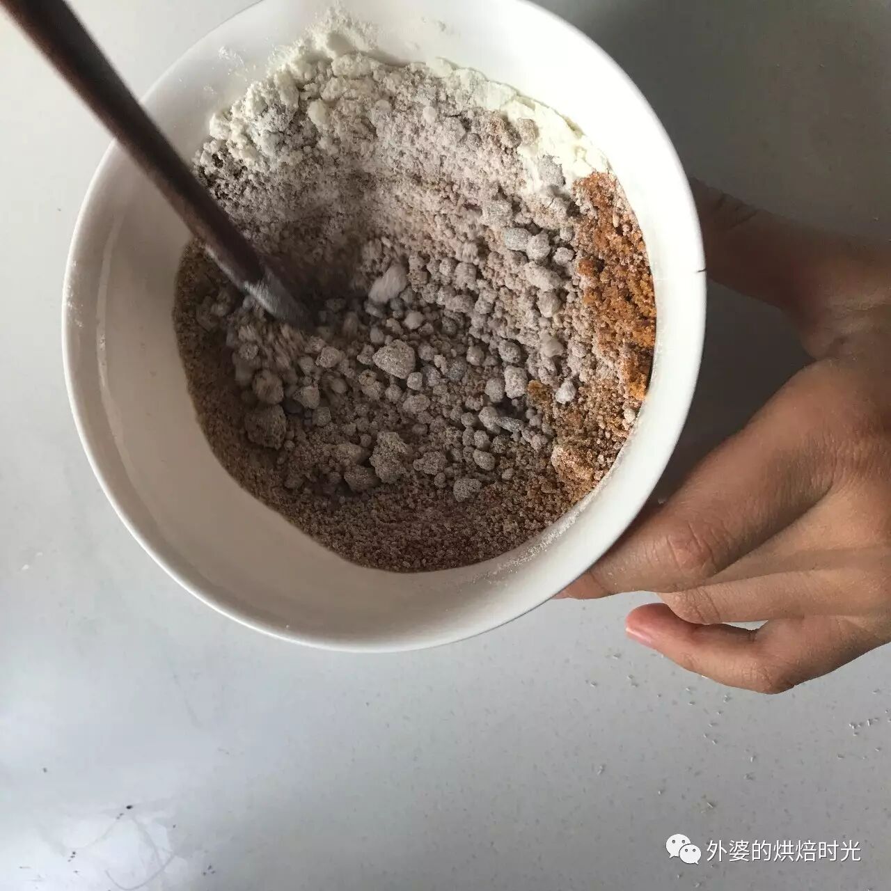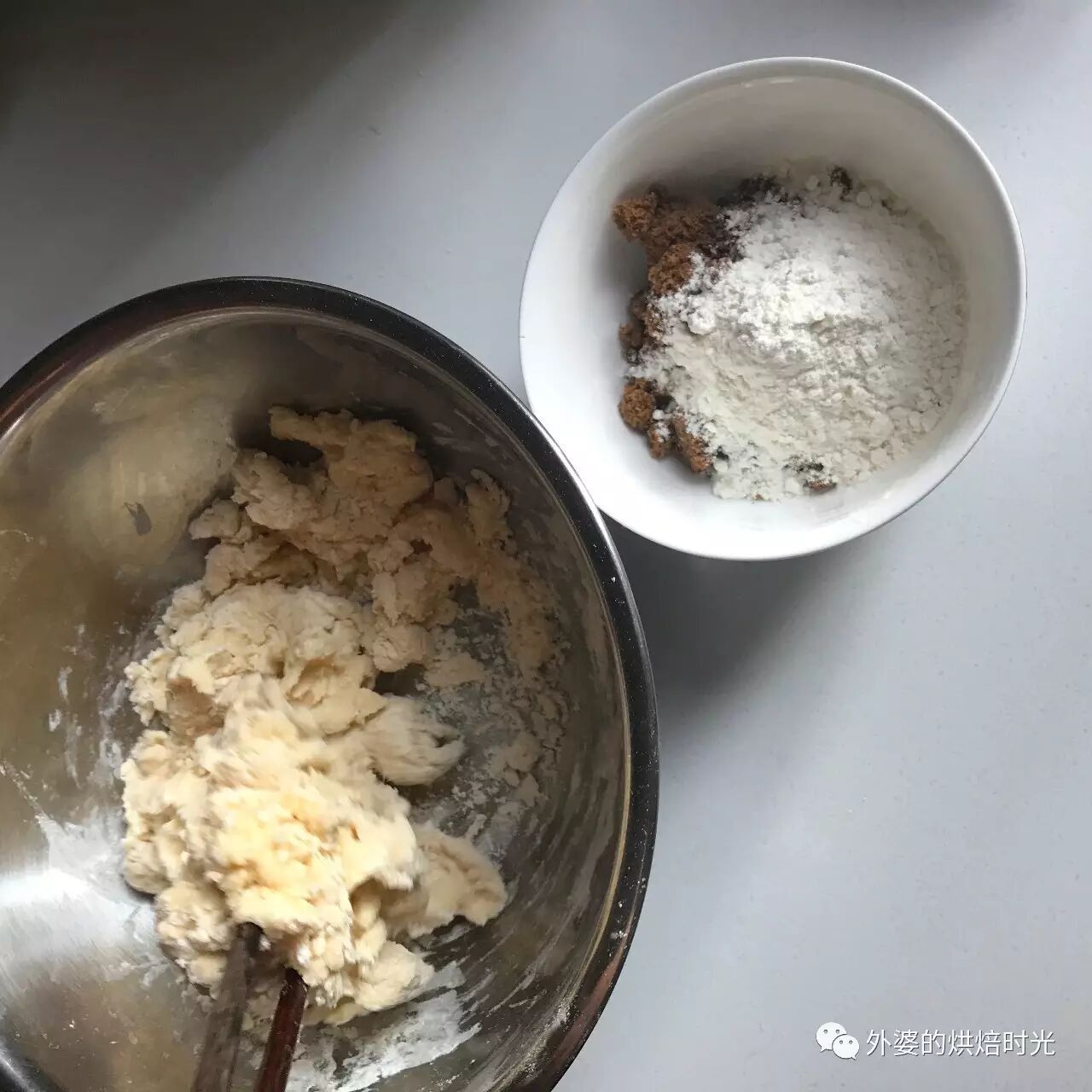 step 6:混合面粉和红糖,拌匀为馅料。红糖中加入面粉,是为了降低红糖的流 动性。