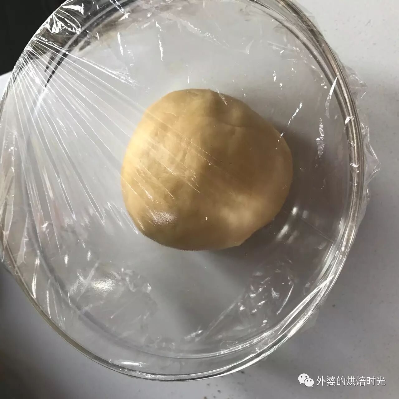 step 4:用手揉成光滑的面团,覆盖保鲜膜发酵30分钟。