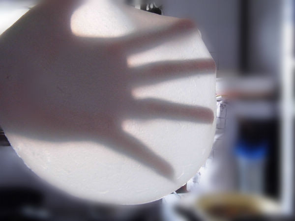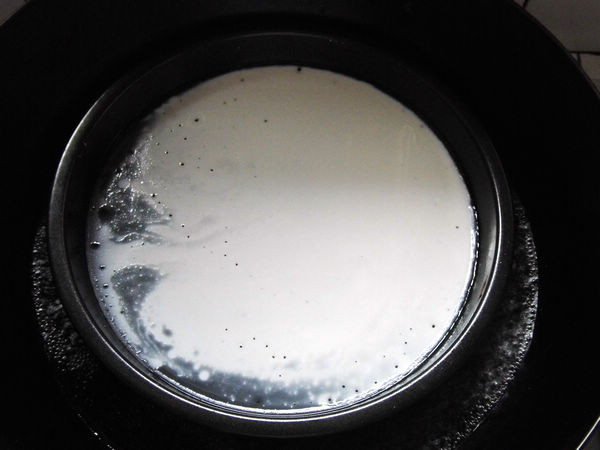 2、用平底盘,如果不是平底的凉皮会一边薄一边厚,盘子不易太厚。
