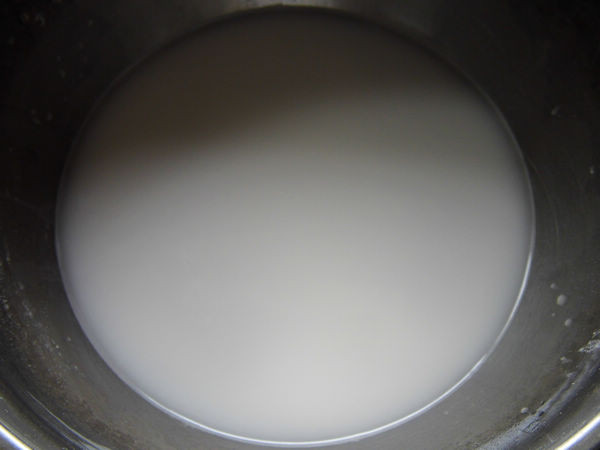 1、在舀适量的淀粉水倒入小盆里前,必须生将小盆涂上一层油,这样就不会粘盆子;