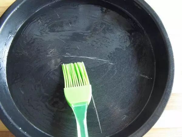 用植物油刷匀圆盘,做凉皮的盘子我用的8寸披萨盘,没有的可以用其他的不锈钢盘子