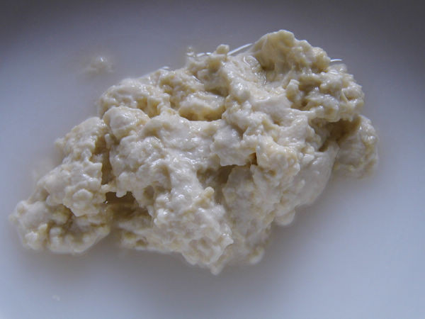 洗好的面粉水需要很长时间的沉淀一小时后,把上面一层的清水倒掉,剩下的就是做凉皮的淀粉水了