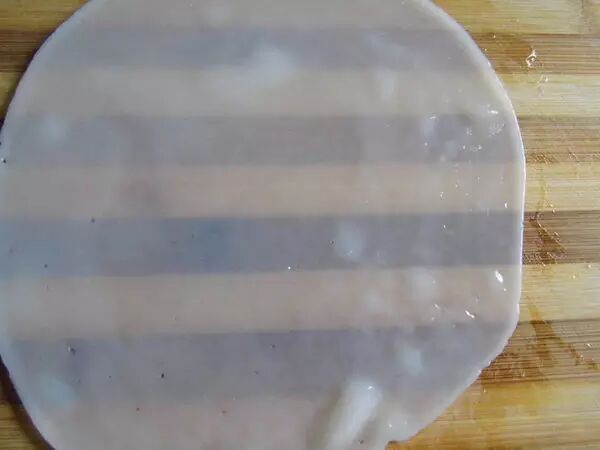 如果做出来马上食用就不用抹油了,盘子里抹过油,如果要放着进冰箱的话,在面皮上抹上适量植物油,依次把所有的淀粉水做完