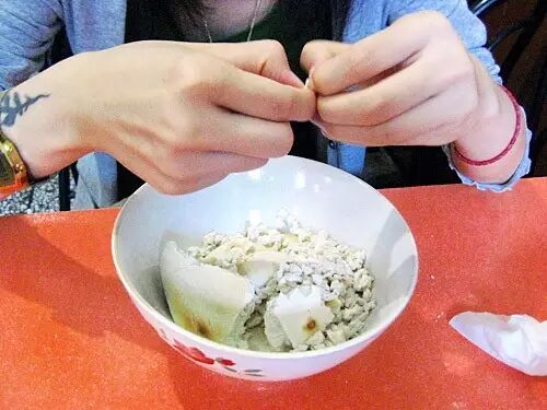 泡馍馆子里,大桌子几排齐走,三五人一桌, 一人一只碗拿个饼子掰馍豆豆,掰会儿还得歇歇,吃口凉菜喝口酸梅汤谝两句闲传。这悠哉闲懒的画面,让人有种走错门栽进茶馆的错觉。虽说西安人豪放不拘小节,一嗓子秦腔吼的粗犷热闹,但对吃的精细劲儿倒是有种江湖老手的高深意味。