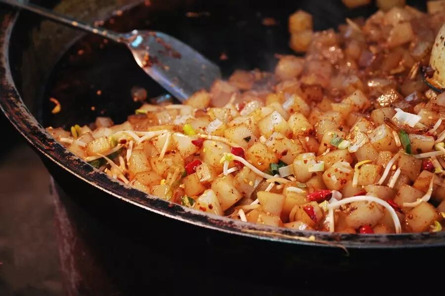 在各路小吃云集的岐山,路边的这种小摊很容易被忽视,一碗滑嫩的炒凉粉,被蒜汁和豆瓣包裹,出锅时撒上一把香菜,即便是在炎热的夏天,这份美味的凉粉也值得品尝。