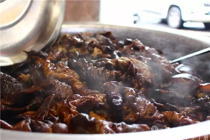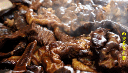 葫芦头泡馍的标配,是把猪内脏、豆干、鸡蛋等食材一起烟熏而成,在西安不管在哪家葫芦头店,都能看见梆梆肉的身影。