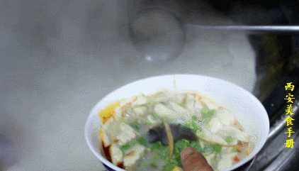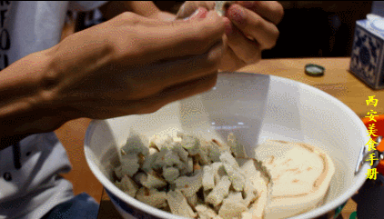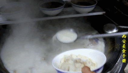 别小看这一招一式,泖出来的泡馍好不好吃,全靠师傅多年的经验判断。何况每碗的馍大小不一,要多久、泖到什么程度、也都要看这师傅的手下功夫。