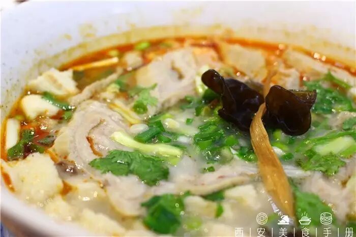 再单吃一口精肠,处理的干净没异味,鲜香软烂,有弹牙的嚼感,带着大肠独有的油香,不肥不腻,反而为泡馍增添了不少肉香。最后再吸溜一口热汤暖暖身,汤鲜香清淡,不那么重口,盐底不重非常健康,这也算得上是春发芽的特点之一。