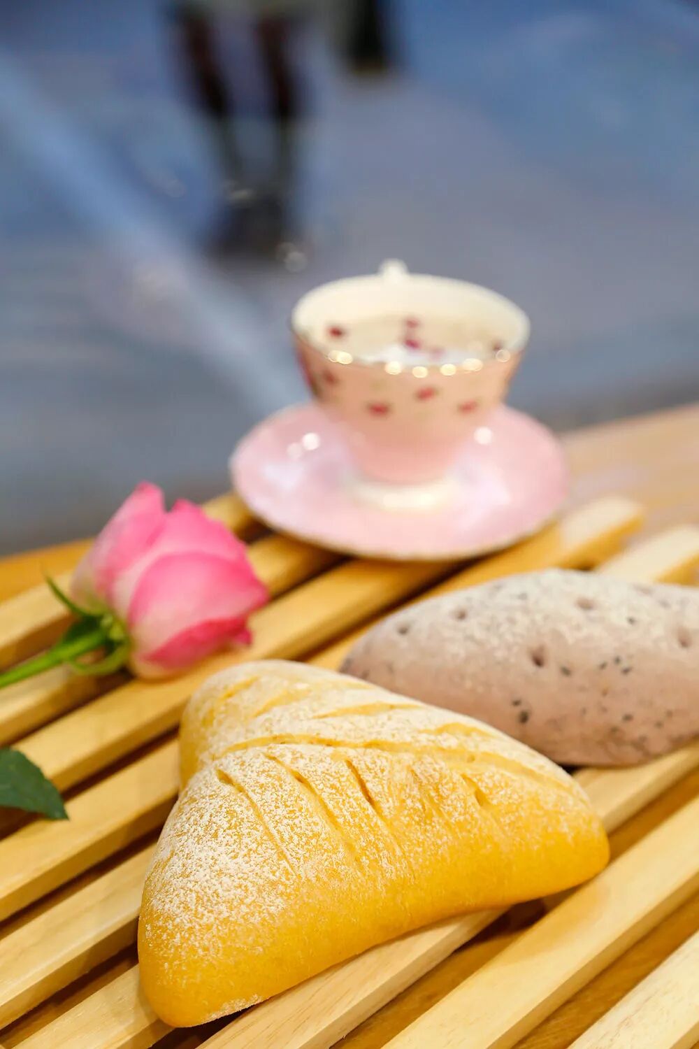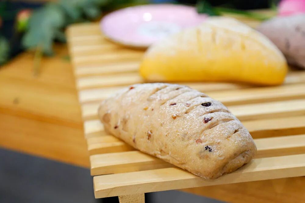 除了甜品,店里的欧包同样值得推荐,纯天然手工制作,连面包着色也都源于新鲜蔬果。紫薯、胡萝卜、火龙果、草莓等等食材带来了色彩,面包师傅借着食材的灵感将面团做成各种形状,比如这款萌萌的火龙果。