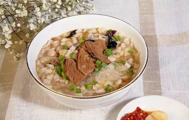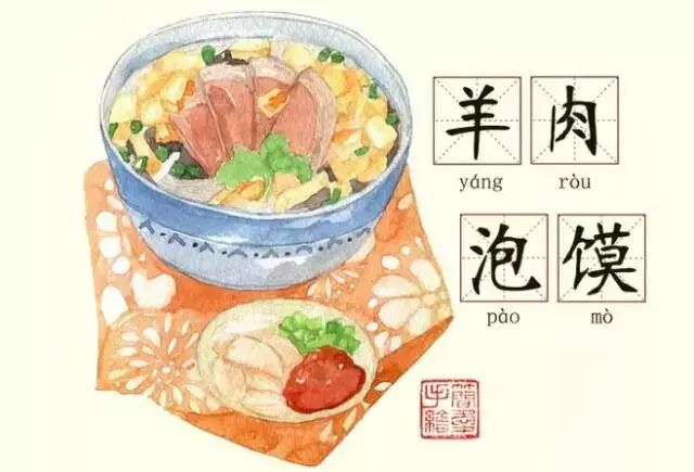 据文献记载,唐代宫廷御膳和市肆都擅长制羹汤。“三日入厨下,洗手作羹汤”。羊羹者,羊肉烹制的羹汤,即当今牛羊肉泡馍的雏形。