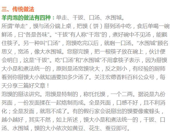 个人制作羊肉泡馍,可增加些许如鸡精、味精、蚝油、豉汁、鱼露、豆豉之类的调味剂进行提味、提鲜。但原味羊肉泡馍是无需上述这些调味品的。关注宏德香料百科公众号,每天分享三篇好文章!