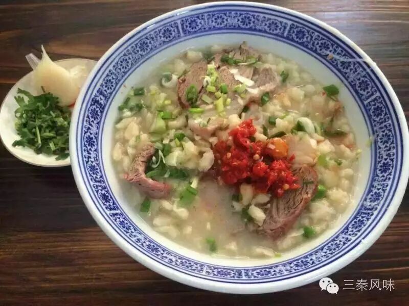 羊肉泡馍”实为“羊肉烩馍”好吃又营养,羊肉泡馍地道的吃法是先用手掰馍,掰馍的方法也很有讲究:要把圆形的饼先横竖掰成四块,把每块分别劈成两层,最后再把每块细细地掰成大黄豆大小。再用羊汤将掰好的碎馍烩制泡馍,这样的泡馍做出来 才入味,吃起来香。吃泡馍要配三样小菜:一是糖蒜,爽口去腻;二是鲜辣酱,它刺激食欲;三是香菜,它清香爽口。这三种小菜不仅是吃泡馍必须的调味品,而且富含维生素C,其中的辣酱和香菜还富含胡萝卜素。正确的食用泡馍方法:应该是“蚕食”:不要乱搅,像蚕吃桑叶一样,直到吃完,行家把这种吃法叫“蚕食”(陕西话叫“刨着吃”)。