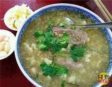 羊骨头鲜汤的汤底,规矩的锅盔粒