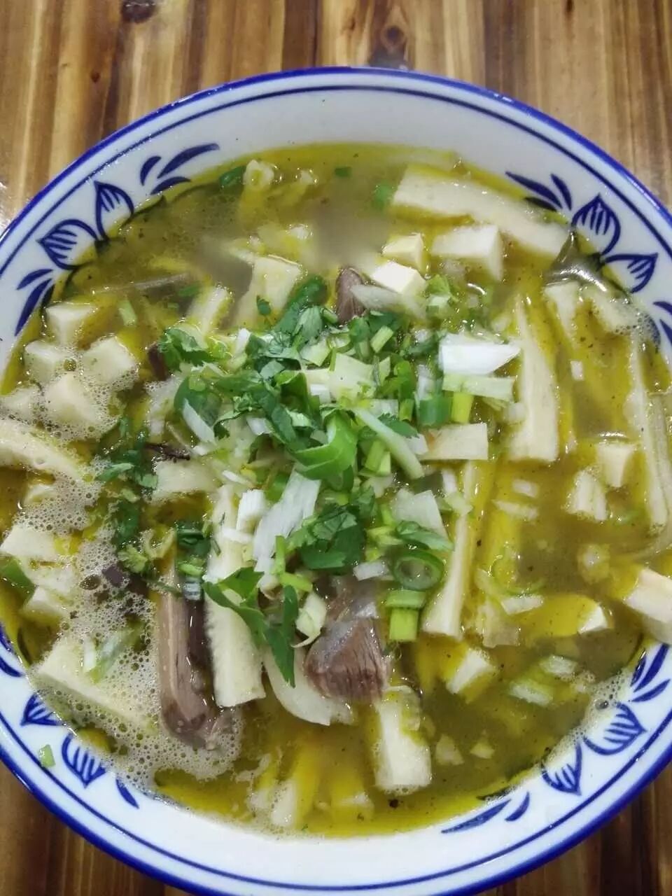 转眼间自己即将跨入不惑之年,从小到大,从上大学到工作,吃过的泡馍数不胜数,西安的小炒泡馍、渭南的水盆泡馍、平凉的春花楼泡馍等等,各有千秋,但我始终觉得还是陇州的羊肉泡最可口。究其原因,我想除了故土情结之外,还有一个重要的原因就是陇县境内植被良好,森林覆盖率高,山头树木葱茏,山坡牧草青青,山涧溪流淙淙,关山草原自古草肥水美,是理想的牧马牧羊之地。出自这里的羊儿,吃的天然牧草,饮的天然矿泉水,肉质自然细嫩鲜美,不同凡响。《本草纲目》记载:羊肉,性温味甘,补气滋阴,暖中补虚,开胃健脾;可正气祛邪,治畏寒怕热;补元阳,益气血;对寒暑侵袭,冷热不均,四肢无力,产后虚弱有奇效。羊肉高蛋白,低脂肪,含磷脂多,胆固醇少,故传统中医有“人参补气,羊肉补形”之论,因此人们吃了羊肉不仅不会发胖,而且会不断增强体质,提高人体免疫力。所以陇县人会常说“要想长寿,常吃羊肉”。千百年来,在陇州这块大地上,人们总是舍不得,离不开,放不下羊肉泡,吃羊肉、喝羊汤已成了一种习惯。
