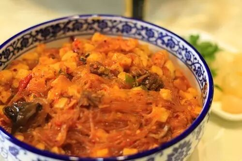 粉丝吸饱汤汁与小块木耳浮浮沉沉闪着光