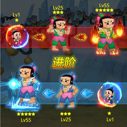 会结合动画和游戏双方的特色,让玩家准确理解到这是游戏广告。比如在如下的进阶类广告素材当中,除了经典的原作画面,还引入了游戏升星进阶的概念,以此导入更精准的游戏用户。