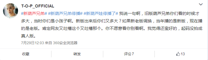 到最后《新葫芦兄弟》的制作方有苦难言,一边是依旧吐槽的原著迷,一边是期待开播的新版粉,当真是“猪八戒照镜子里外不是人”了~
