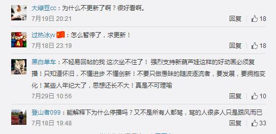 就这样,在网友们的吐槽声中,《新葫芦兄弟》开播一星期又停播,动画制作团队相关人士发声,大致意思就是:新葫芦娃动画做成这样是因为没钱了啊!