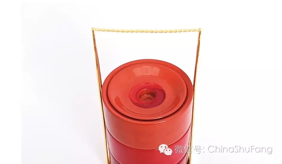 三层宝塔茶叶罐:造型似三层宝塔,每层放上不同的茶。盖子上的图形遵循传统婚礼图案中以太极图为骨架的原则,简化了代表礼的雁纹。
