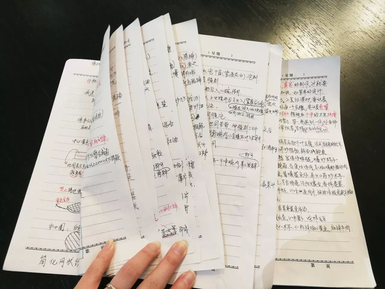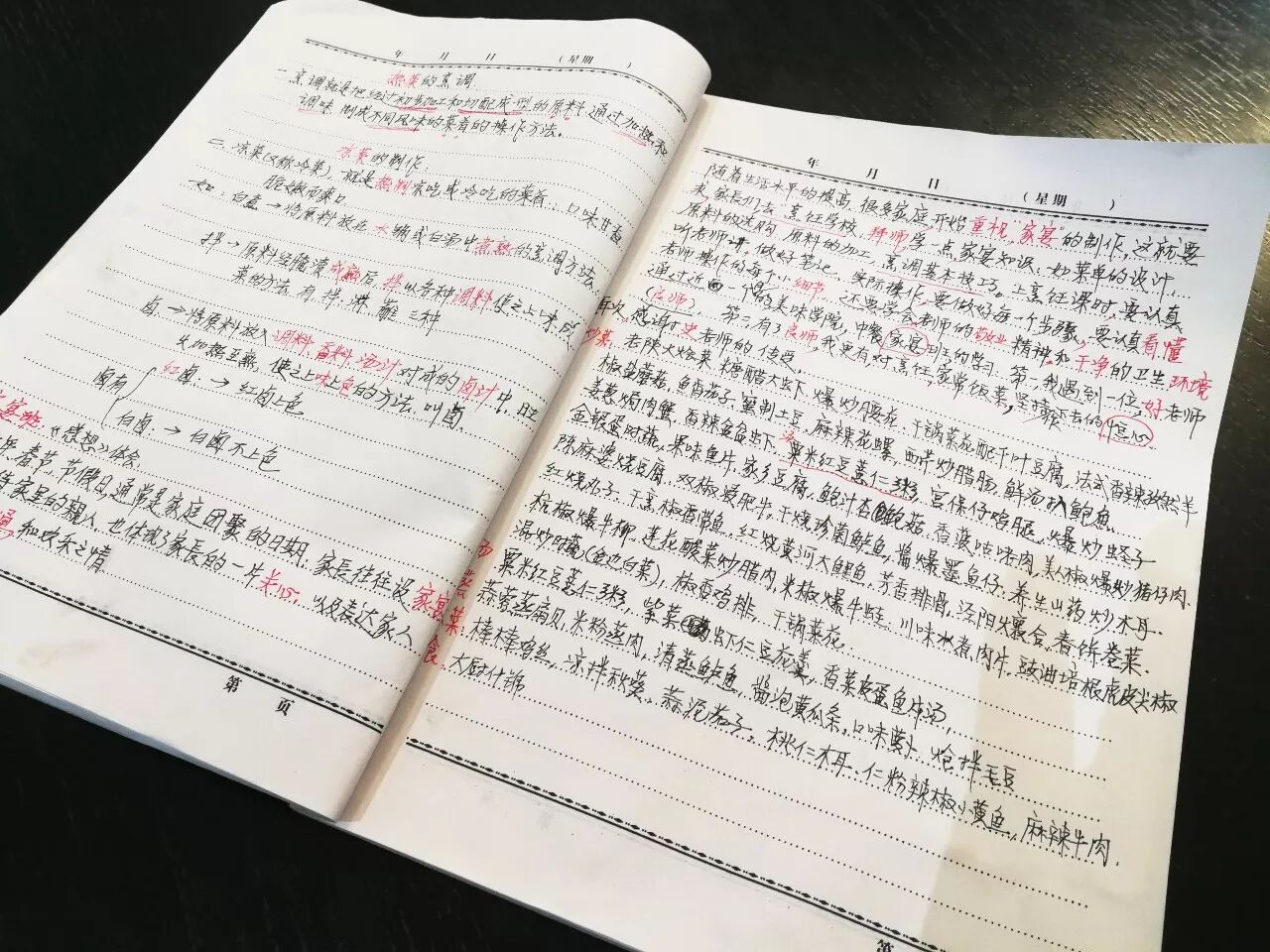杨叔每天都会记做菜笔记,作为晚辈,我真的惭愧,对于自己热爱的事情从来没有这么认真,上心。而杨叔的笔记不仅记录了做菜步骤,自己的感悟,还有对授课老师的感恩。
