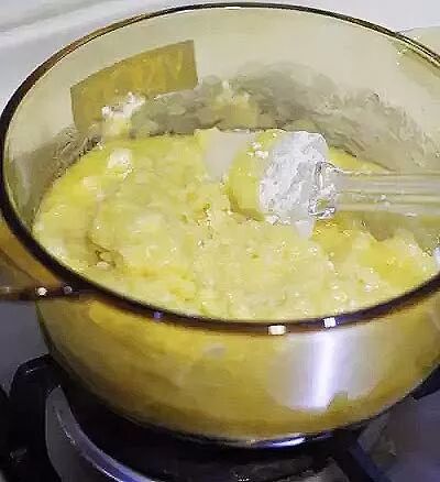 1.把黄油、水、糖、盐一起丢到锅子里。