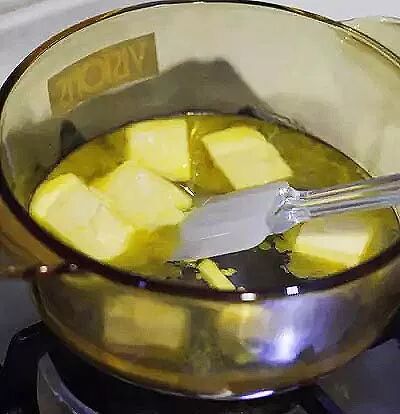 2.中火加热至黄油完全融化,继续加热到水沸腾。