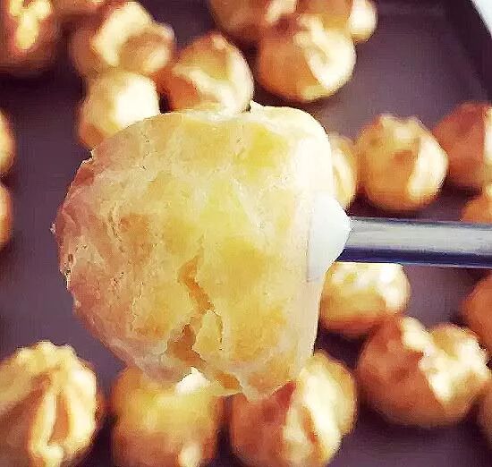 做好的泡芙外皮香脆,内馅柔滑,怎么样,心动吧!