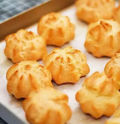 主料:低筋面粉(泡芙皮)100g、鸡蛋(泡芙皮)3个左右