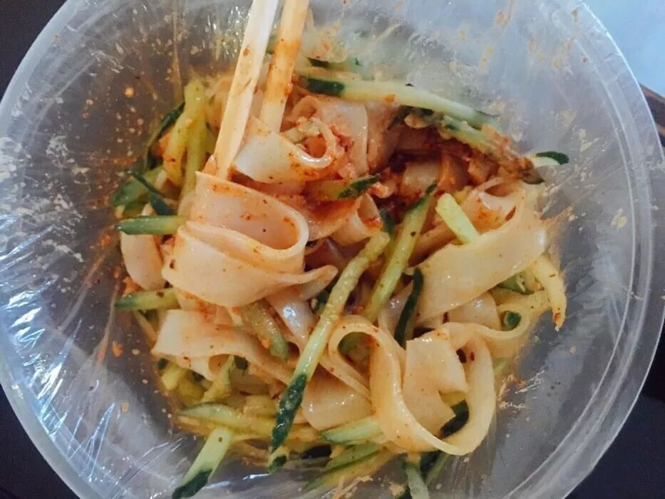 店面很小但是很干净,两口子很热情的招待食客,凉皮吃起来够爽口、有韧劲,调料也调的很香,是那种香辣的。