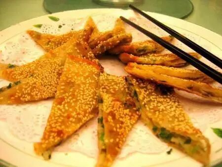 煎之前我们在上面加一点点芝麻,油热后下锅小火煎至两面金黄即成。
