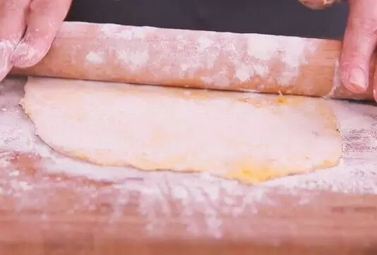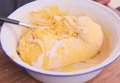 基本上要把它做成一个不黏手的面团。如果还黏手的话,要再加面粉。
