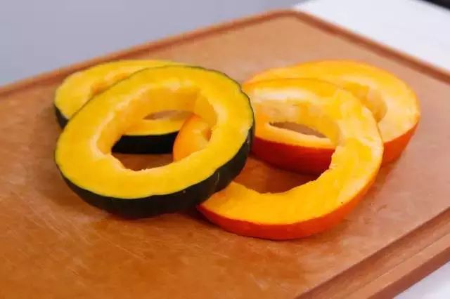 1. 小南瓜切片,去籽,得到南瓜圈。