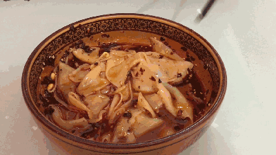 再配菜着芹菜、菠菜、豆芽、面筋等,依个人口味调入油辣子、盐、醋、酱油、蒜泥 等佐料,软糯香辣的口感让人欲罢不能。