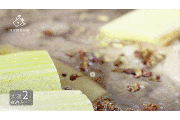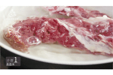 锅中烧清水,放一根羊腿骨、500g羊肉,大火煮沸,撇去浮沫后捞出;