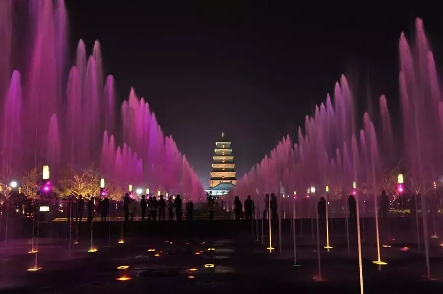 大雁塔的音乐喷泉是亚洲最大的音乐喷泉,看过大雁塔北广场喷泉表演的人无不倾醉于她的壮丽大气,她俨然成了现代西安的一处新景观。
