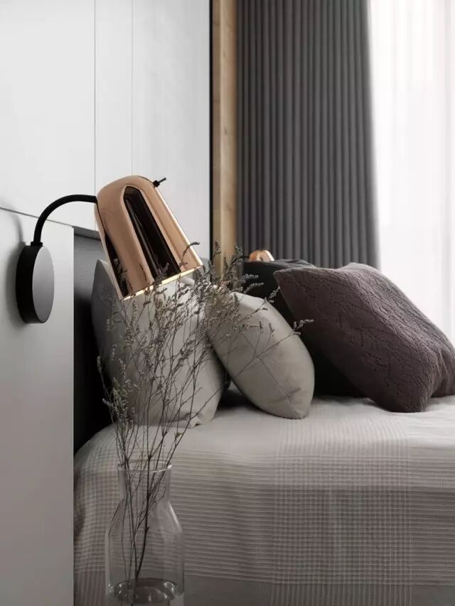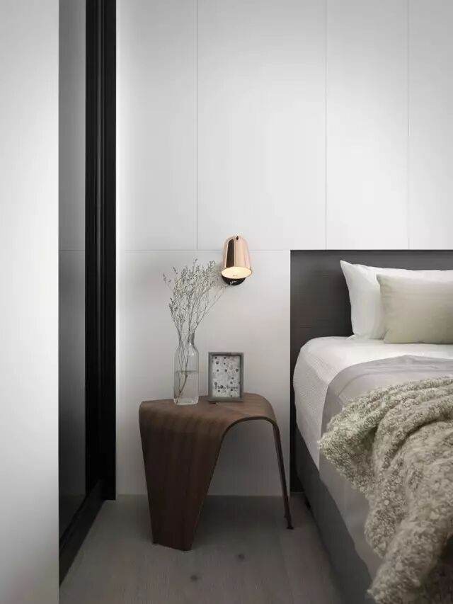灰色进入卧室后,成为配角,白色成为主色调。卧室更加温馨。