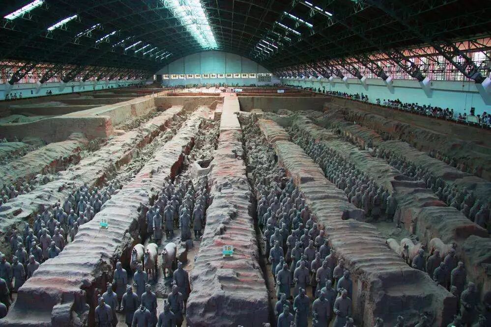 兵马俑——1974年3月,兵马俑被发现;1987年,秦始皇陵及兵马俑坑被联合国教科文组织批准列入《世界遗产名录》,并被誉为“世界第八大奇迹” ,先后有200多位外国元首和政府首脑参观访问,成为中国古代辉煌文明的一张金字名片,是世界十大古墓稀世珍宝之一。